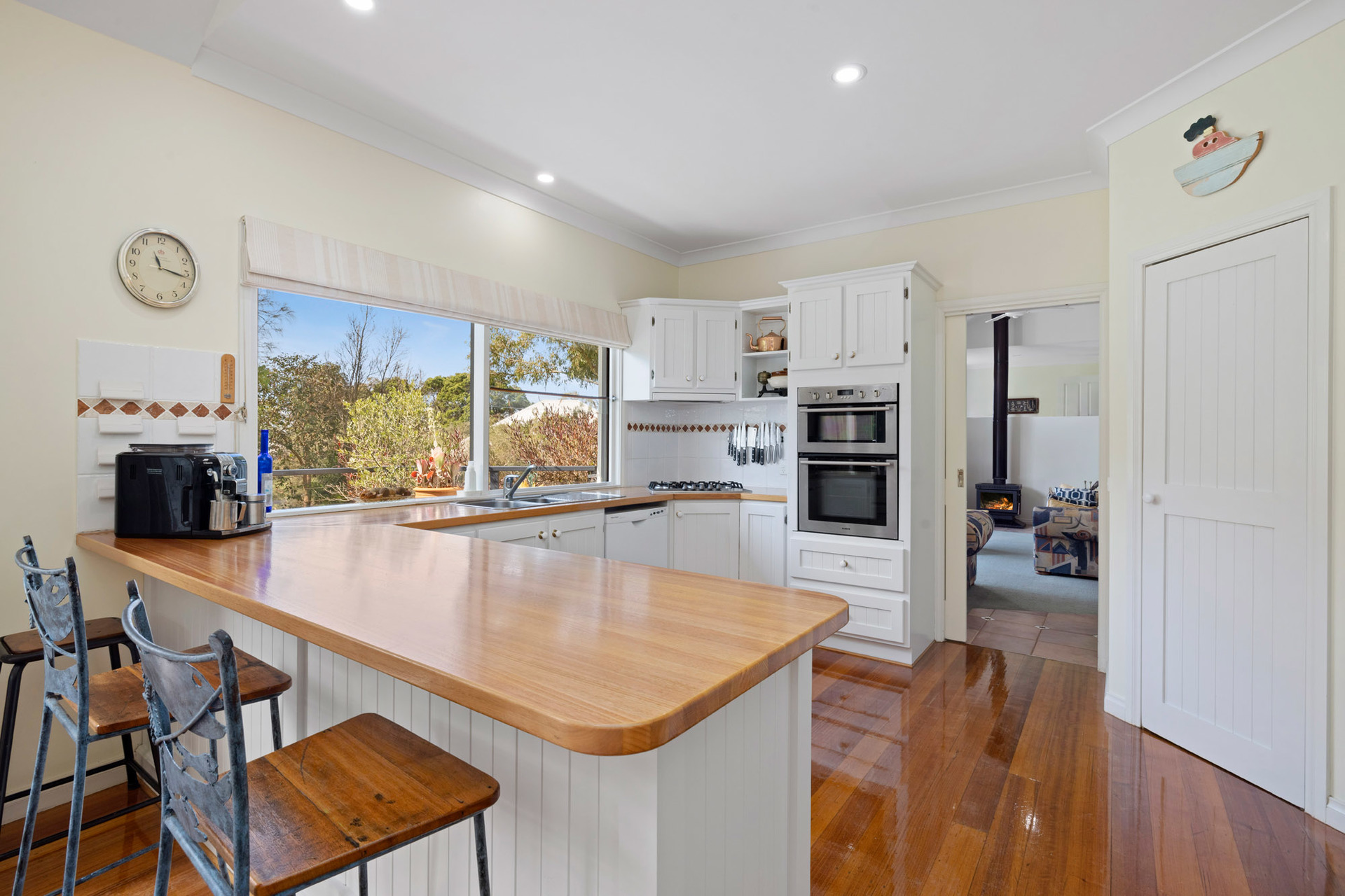Vaulted ceilings, a slow combustion wood heater, a country-themed kitchen with timber benchtops and polished timber floors create a light and airy setting for permanent or holiday living, while other features include a master bedroom with ensuite and walk-in robe, split system air-conditioning, main bathroom with clawfoot bath and ceiling fans throughout.